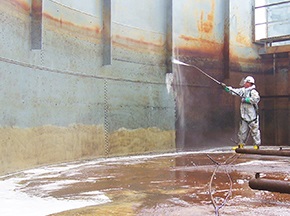 儲油罐的罐底區(qū)、底部的罐壁與油析水的接觸較大,油罐的底部會不同程度的被滯留油析水腐蝕。由于油的種類不同,油品的析出水就可能會呈現(xiàn)酸性或堿性不等。在儲油罐的防腐措施中, 罐體金屬表面的清理工作是最重要的環(huán)節(jié)之一,罐體表面的清潔不僅能去除表面的腐蝕、銹蝕、老化漆層、也同時影響涂層表面的附著力。目前,國內(nèi)較為先進的清理工藝為高壓水射流清洗工藝。[查看詳情]
