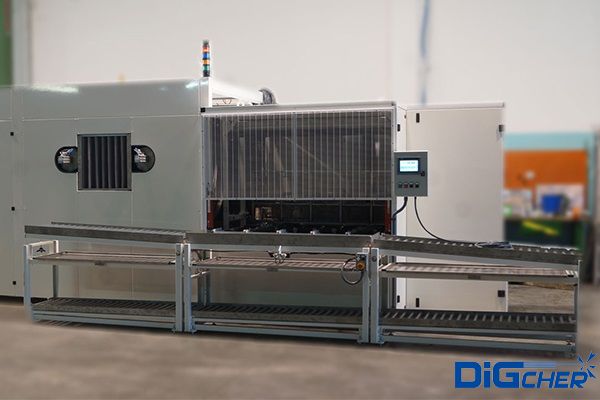 PT-6 SSDA 大軸承通過(guò)式清洗線采用動(dòng)力輥?zhàn)虞斔蜕狭,網(wǎng)帶帶動(dòng)工件一次進(jìn)入噴淋清洗工位、噴淋漂洗工位、烘干工位及霧化上油工位。采用知名品牌PLC實(shí)現(xiàn)清洗過(guò)程全自動(dòng)準(zhǔn)確控制,可變頻調(diào)速。