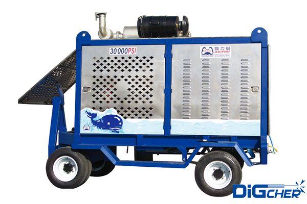 德高潔 DJ 2000/20DT 2000公斤壓力進(jìn)口柴油超高壓清洗機(jī)采用康明斯95kw柴油發(fā)動(dòng)機(jī)作為動(dòng)力源,高壓泵為美國(guó)原裝三柱塞泵,設(shè)計(jì)有三級(jí)進(jìn)水過濾器,并采用特種不銹鋼泵頭、不銹鋼閥門及柱塞、高技術(shù)密封填料;曲軸箱采用飛濺潤(rùn)滑;設(shè)計(jì)有變頻調(diào)速系統(tǒng);配備氣動(dòng)旋轉(zhuǎn)槍;安全閥采用爆破膜式,安全可靠。